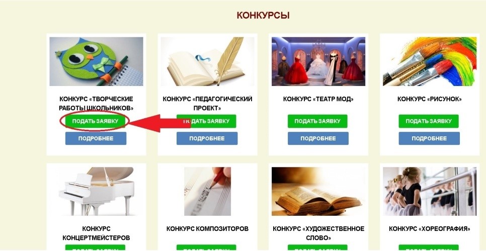 Шаг 1. Выберите конкурс и нажмите на кнопку «Подать заявку»